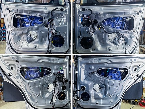 音響改裝前,我們需要對大眾途觀L進行隔音降噪處理。從拆開車門飾蓋后可以看到原車門板沒有采取任何隔音處理。將車門清理干凈后,開始用大能材料做隔音。這樣改裝能讓喇叭更好的發揮,給音響器材提供了一個類似箱體的空間,這樣喇叭發揮出來的聲音才更加飽滿有味道。