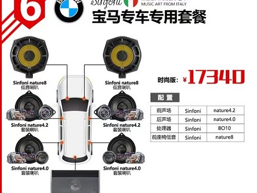 寶馬車主對音質的追求極致,在品牌的選擇上一點也不含糊。在試聽室內聆聽對比之后,選擇了一套十分優質的音響組合,前聲場詩芬尼nature4.2高音+中音喇叭,低音方面是詩芬尼nature8喇叭,可以有效的增加低音部分的下潛力度,讓音樂更加飽滿有力。