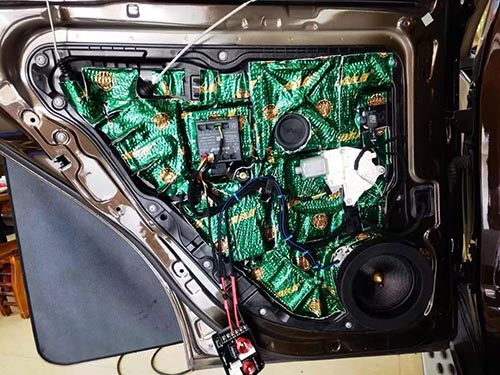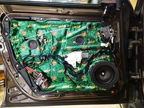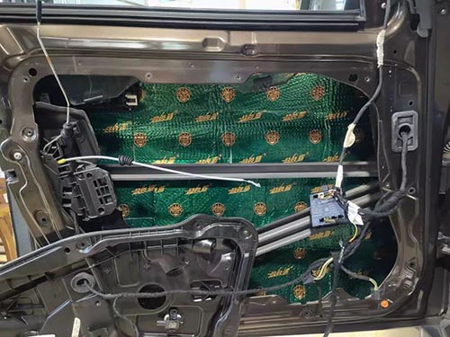 奔馳ML350的原車門板鈑金也很薄弱,喇叭在工作的狀態(tài)下容易產(chǎn)生共振噪音,所以在改裝音響之前需要先給四門做大能超級(jí)盾隔音止震處理,減少喇叭與車門之間產(chǎn)生的共振聲,使喇叭的聲音變得更純厚更集中。