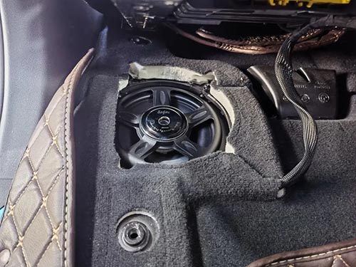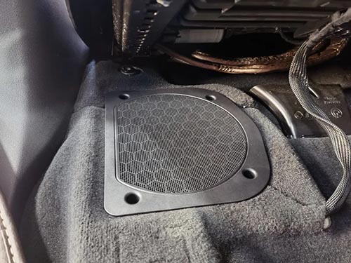 前聲場(chǎng)安裝一套詩芬尼N4.2十N8專車專用喇叭,直接原位安裝,使聲音的中低頻到高頻有更平滑的過渡和更好的銜接;左前座椅下方低音喇叭的原車位無損安裝,詩芬尼寶馬專用N8中低音安裝在座椅底下非常合適,不會(huì)對(duì)原有線路做太多的改動(dòng)。使得音樂在低頻部分下潛力度更深,也讓音樂更具有感染力,右前同樣無損安裝。