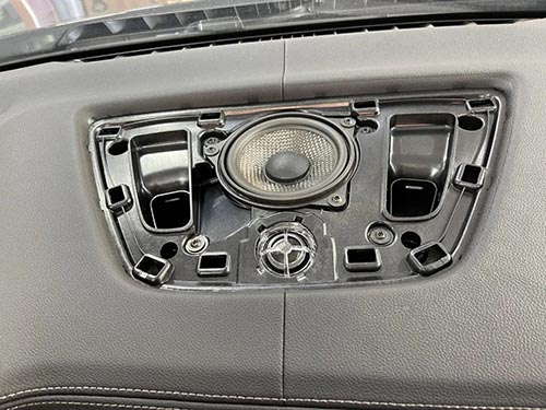 寶馬X5高端豪車,將原車?yán)炔鹣拢葌(gè)數(shù)不少,但是做工品質(zhì)還是顯得十分寒酸,對(duì)比升級(jí)使用的詩芬尼喇叭,更是不在一個(gè)層面上。僅是從視覺上來看,原車?yán)群蜕?jí)使用的喇叭質(zhì)量就高下立判。