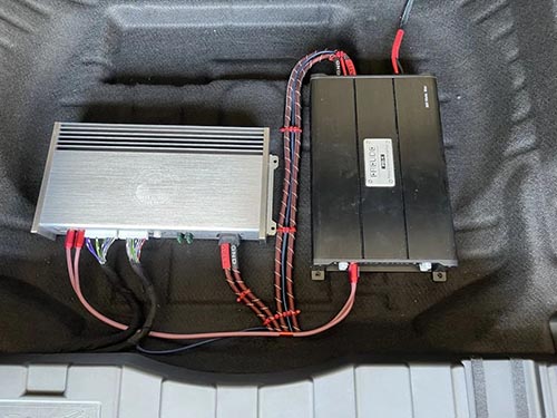 尾箱安裝一只勁浪25A4超低音,搭配德國弗萊德FA-1低音功放驅(qū)動(dòng),強(qiáng)勁的低音一下子就出來了,音樂中的鼓,低音吉他、男低音以及女中音演唱的渾厚感也有了。