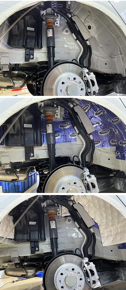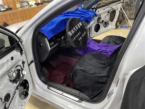 汽車行駛產(chǎn)生的路噪和胎噪也不容忽視,為此改裝師使用大能藍(lán)金剛隔音材料對(duì)輪弧做雙層隔音處理,這就相當(dāng)于切斷了路噪和胎噪傳播途徑,阻止路噪和胎噪傳入。致力為車主打造一個(gè)安靜舒適的聽(tīng)音空間!