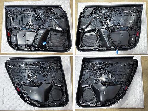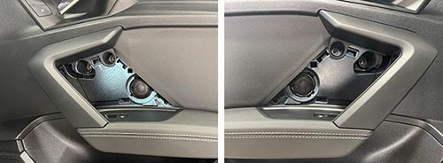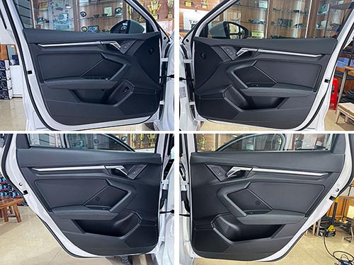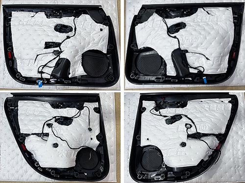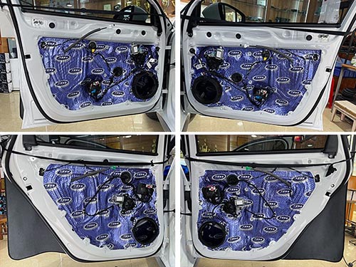 要想音質(zhì)得到整體的提升,細(xì)節(jié)方面的處理也十分重要。四門(mén)隔音對(duì)于音響改裝來(lái)說(shuō),是必不可少的一步,專業(yè)的的隔音施工能使得門(mén)板形成一個(gè)良好的音響箱體,可以提升中低頻的音響效果。使用四門(mén)大能藍(lán)金剛及吸音棉對(duì)門(mén)板進(jìn)行三層隔音降噪施工,增強(qiáng)鈑金剛性同時(shí)也為喇叭提供一個(gè)良好的發(fā)聲環(huán)境。
