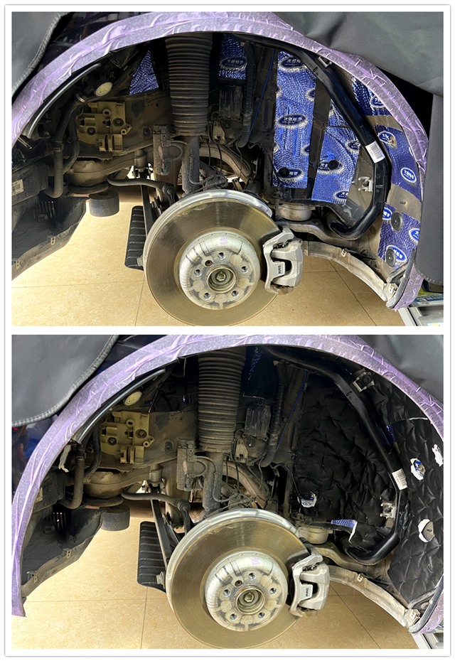 輪弧的隔音也是治理胎噪的有效途徑。汽車行駛時,胎噪極易通過原車單薄的輪弧進入車廂,對輪弧進行隔音雖然施工難度較大,但作用是很明顯的