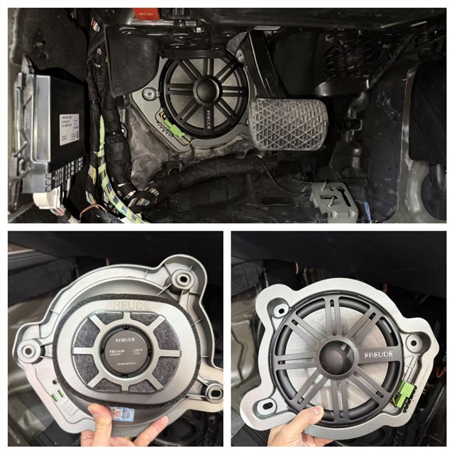 弗萊德FBZ-SUB低音喇叭的表現更是讓人眼前一亮。這款喇叭用料扎實,質感高檔,拿在手中分量十足。其尺寸與奔馳E300的原車低音安裝位完美吻合,無需對車身進行任何切割、打孔,直接實現原位安裝。技師將副駕駛位置的原車低音替換為弗萊德FBZ-SUB低音喇叭。