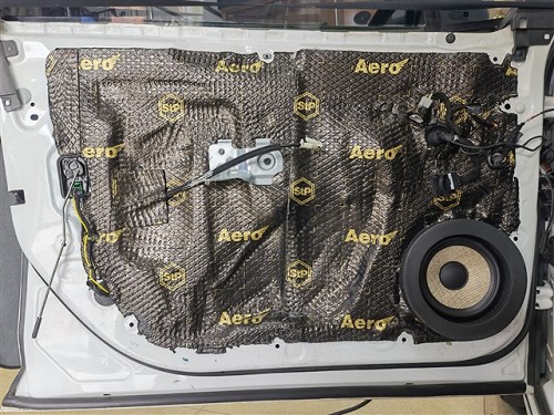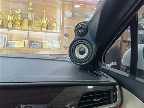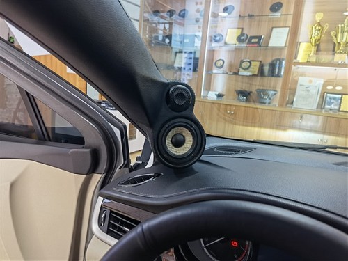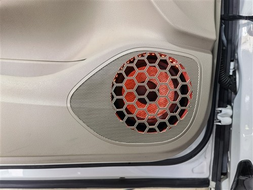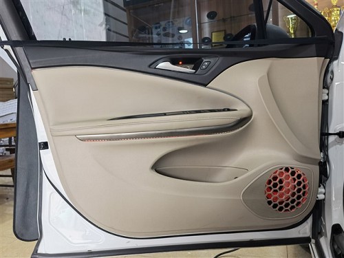前聲場選擇法國勁浪PS 165 F3亞麻三分頻,A柱倒模安裝高音和中音,傳統(tǒng)8字形式,左右聲場配合形成精準(zhǔn)的發(fā)聲朝向與相位往車廂中部發(fā)聲。中低音采用是門板喇叭位直裝方式,先在門板進(jìn)行雙層俄羅斯StP航空炸彈隔音強(qiáng)化形成箱體效果,提升揚(yáng)聲器發(fā)聲效果,同時加入墊圈和美音圈,讓喇叭久經(jīng)耐用聲音更耐聽。