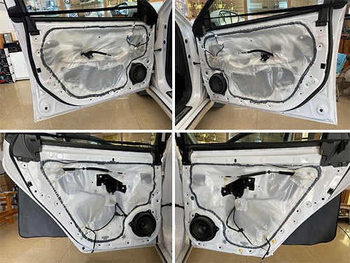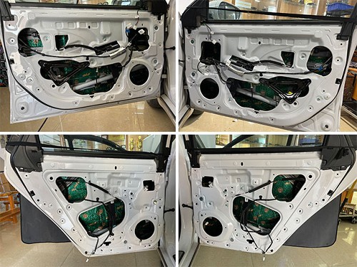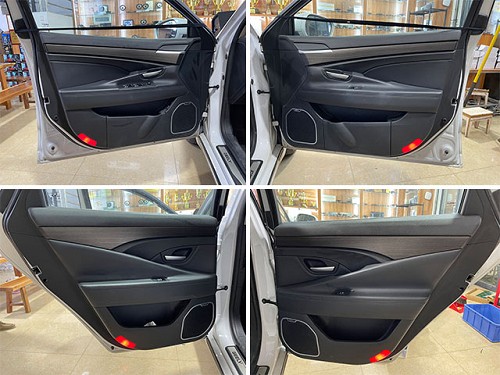 音響改裝升級前,門板做隔音是音響升級必不可少的,也是喇叭音質(zhì)的發(fā)揮的保證。隔音內(nèi)層條形止振隔音貼法,條形貼法是根據(jù)水紋隔音原理來的:外層整張隔音,增強門板氣密性,減少高速行駛時,風(fēng)噪的傳入。專業(yè)的隔音貼法,讓隔音效果更加明顯。