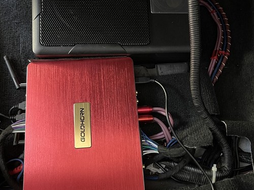 本次的音響升級,前聲場使用詩芬尼S62兩分頻套裝,詩芬尼有著出色的人聲演繹,播放的音樂十分耐聽,讓人不容易產生聽覺疲勞。高音、中低音無損安裝,中低音安裝時還加裝了美音圈,能填充原車內飾板和喇叭間的間隙,防止音效擴散,讓聲音集中向車內傳出,吸收車門噪音,提升喇叭音質的功效。