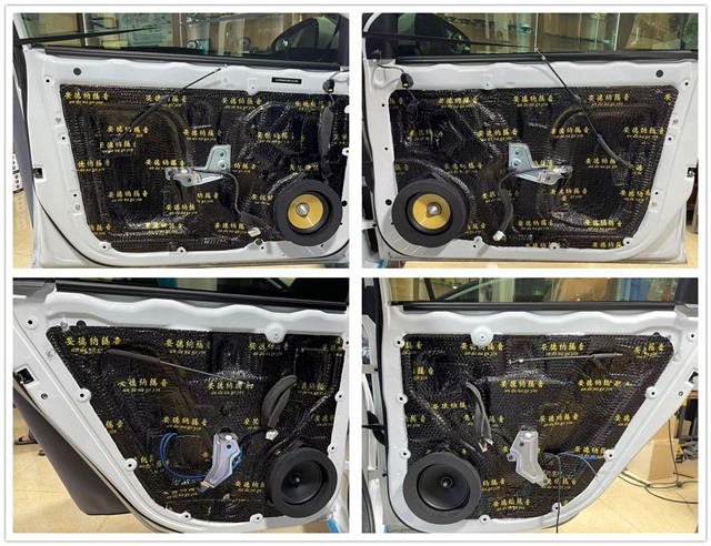 原車門板未經過隔音處理,因此導致各種外界噪聲和車門鈑金的共振聲被傳入車廂內部,影響了音響效果,讓喇叭的聲音變得不夠清晰不夠流暢。為了解決這個問題,我們的改裝師采用了高品質的安德納環保隔音材料對四門采取了專業隔音處理,有效地減少了噪音和振動,為喇叭發揮打下了堅實的基礎。