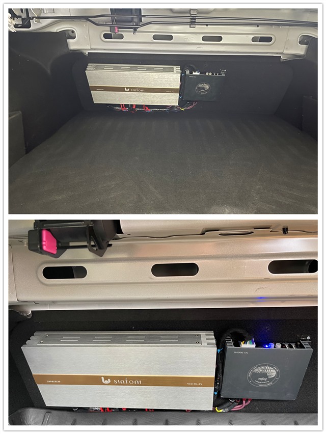 詩芬尼MA130.4功放和詩芬尼BO6.0pro音源處理器引線安裝在尾箱側面,完全不會占用置物空間