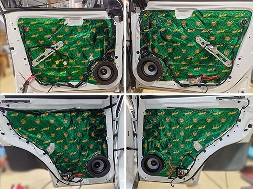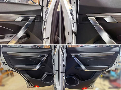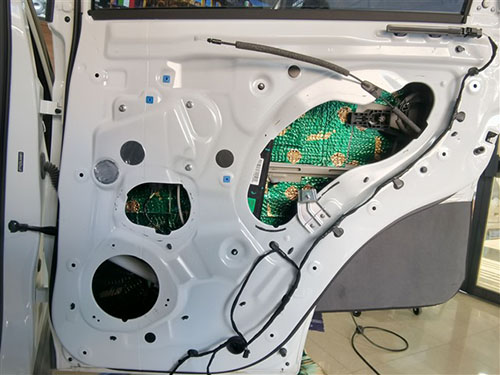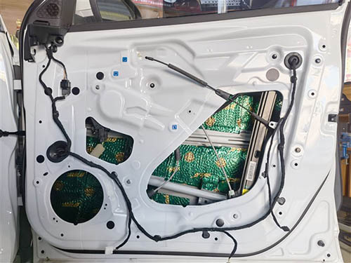 為了給汽車音響喇叭打造一個(gè)良好的工作環(huán)境,改裝技師采用大能超級(jí)盾隔音材料對(duì)車門做了雙層的隔音處理,這就像是在門板的周圍制作了一個(gè)箱體一般,一方面能夠減少噪聲對(duì)其的干擾,另外一方面還能夠有效的增加音樂的立體感。