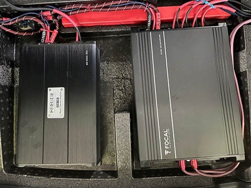 功放在整套汽車音響系統(tǒng)中的地位是非常重要的一部分,它肩負著為喇叭提供足夠功率,讓喇叭能保持正常、良好的工作狀態(tài)。此次,為了不占用車內(nèi)空間,技師把弗萊德FA-1D和勁浪AP-4340功放都設(shè)計安裝在后備箱備胎位置,這樣既不影響車內(nèi)空間的同時,又方便調(diào)試,更加高效的提高了音質(zhì)。