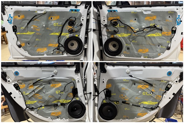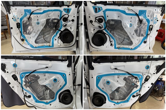 原車門板僅有一層塑料薄膜,隔音效果有限。技師拆除原薄膜后,使用GT隔音材料對(duì)四門進(jìn)行了雙層隔音處理,有效抑制振動(dòng)并提升車門密封性,為喇叭提供更好的工作環(huán)境。