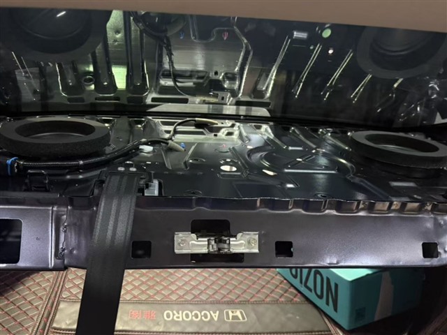后聲場的喇叭被安裝在后臺板原位,同樣加裝了美音圈。安裝完畢后,將所有拆卸的內飾全部原樣復原,看不出任何改裝痕跡,完美保留雅閣原有的內飾美感。