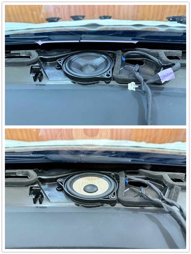 勁浪IS T3Y 100中音(下)無損替換原車喇叭(上)安裝在儀表臺兩側(cè),無需破壞原車線路,實現(xiàn)“外觀無痕、音效翻倍”