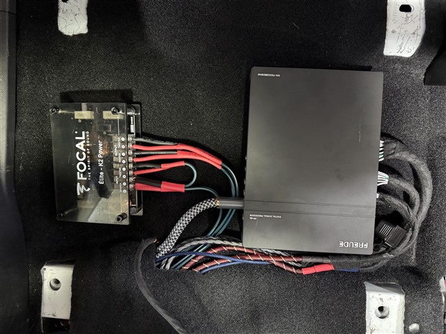 在音響器材的選擇上,這位車主的眼光可以說是非常到位的:喇叭升級為法國勁浪黃盆KX2兩分頻,這套喇叭無論在解析力、聲音的通透度還是動態(tài)表現(xiàn)上都極為出色。高音安裝在門板三角位,聲場定位更準(zhǔn)確。中低音喇叭則無損安裝在原位,既保證了音效,也不影響原車外觀。