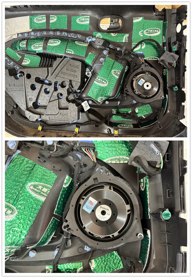 想要好聲音,隔音是基礎(chǔ)。改裝師對門板內(nèi)層進(jìn)行了條狀粘貼方式的大能超級盾隔音處理,能夠有效抑制門板共振,提升音響喇叭的工作環(huán)境。不僅如此,連門板飾蓋也進(jìn)行了相同方式的隔音處理,真正做到從細(xì)節(jié)著手,打造更安靜、純凈的聽音環(huán)境。