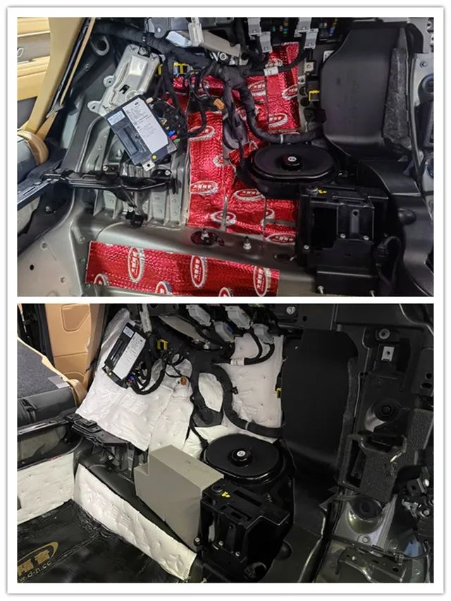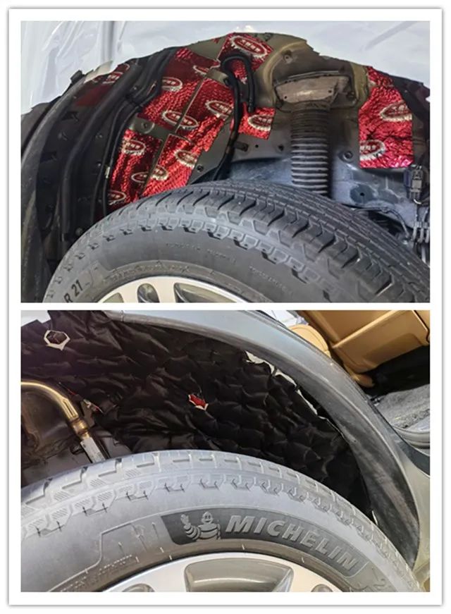 根據(jù)前后輪的結(jié)構(gòu)特性,使用大能隔音材料對前后輪進(jìn)行止震隔音可以充分有效解決胎噪、路噪問題