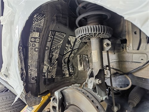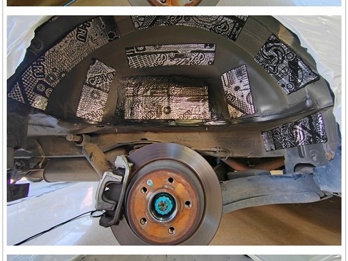 對于后輪弧,我們同樣采用了stp小炸彈,同時加入了溫莎棉。溫莎棉的高密度纖維結構可以有效吸收聲波,進一步提升了隔音效果,讓車內更加寧靜。