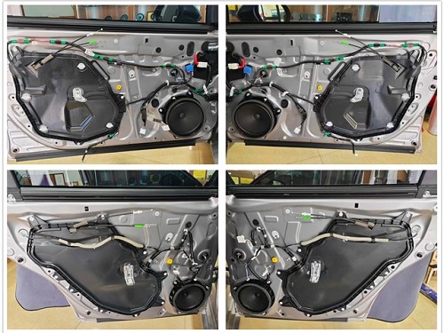 對車門進行隔音處理可謂是音響改裝的第一步。我們選擇了大能藍金剛隔音材料,在每一道門板都施以不同層次的隔音,從而降低外部噪音的干擾。最特別的是我們在門板飾蓋處使用了大能溫莎棉,提高了隔音效果,且復原后的門板毫無改裝痕跡。