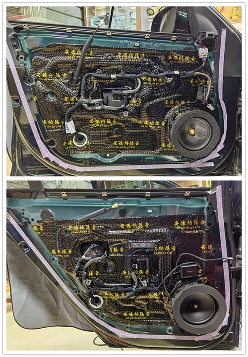 安靜的車廂是升級音響的前提,所以汽車隔音要做好!改裝師先使用安德納對門板進行內(nèi)外雙層止震隔音,將空洞的原車門板打造成解釋封閉的“箱體”,降低行車中鐵皮共振產(chǎn)生的噪音或外界傳入車內(nèi)的噪音,加倍提升安裝在門板原位的喇叭的音質(zhì)。