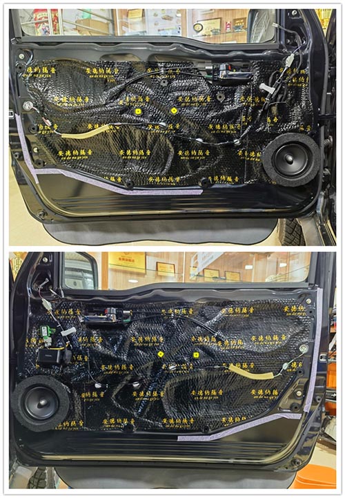 原車門板隔音不足導致音響效果差,改裝師使用安德納環(huán)保隔音材料對門板進行雙層隔音處理,形成了密封的箱體,有效抑制了門板噪音和風噪,為后續(xù)音響升級提供了理想的發(fā)聲環(huán)境。