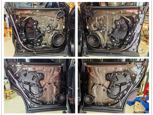 原車門板并沒有進行有效的隔音處理,改裝師在更換喇叭前,先使用安德納隔音材料對門板進行了隔音處理。通過四門隔音處理,車內環境變得更加安靜,使音響系統的表現更加純凈、清晰,為接下來的音響改裝打下基礎。