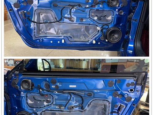 為了達到更高的音質標準,我們選擇了勁浪 165AS3 三分頻喇叭作為前聲場的升級方案。這款喇叭系列在各頻段均表現出色:高音通透細膩,中音溫暖準確,低音深沉厚重,有效提升了音質的逼真感和層次感。在安裝前,我們使用了安德納隔音材料對車門進行了隔音處理。這不僅有效降低了風噪和共振噪音,還為安裝在車門位置上的喇叭提供了更好的工作環境,進一步優化了音質輸出效果。