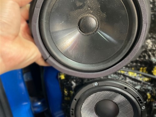 勁浪165AS3中音及中低音安裝近照,加裝美音圈提升整體音質的清晰度、空間感和動態范圍
