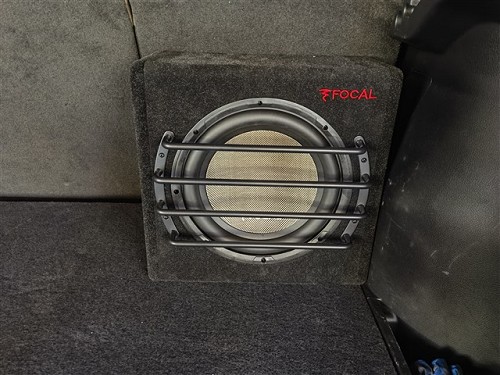 原車音響系統并沒有超低音喇叭,導致低頻表現力欠佳,尤其是在播放一些低頻音樂時,聲音的厚重感和震撼力不足。為此我們增加了一只法國勁浪SUB25a4 10寸超低音喇叭,精準還原低頻細節,提升音樂的整體氛圍感!