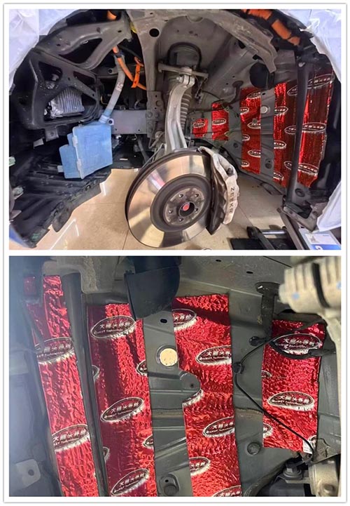 本次隔音升級的重點在于四輪,因為這是胎噪和路噪的主要來源。泉州海林專業(yè)改裝師根據(jù)極氪001的特點,制定了細(xì)致的四輪隔音方案,選用大能紅派、噪音終結(jié)者和超級溫莎棉等優(yōu)質(zhì)隔音材料,分層次進(jìn)行處理,達(dá)到理想的隔音效果。
