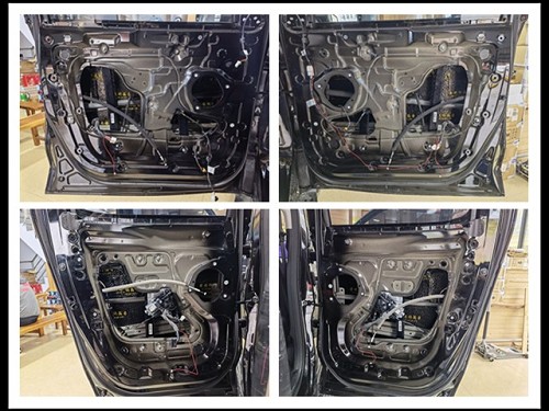 升級音響最需要關注的就是門板隔音了,為了讓汽車的隔音效果能得到一定的改善,改裝師選擇使用安德納的環保隔音材料來進行接下來的隔音施工。
