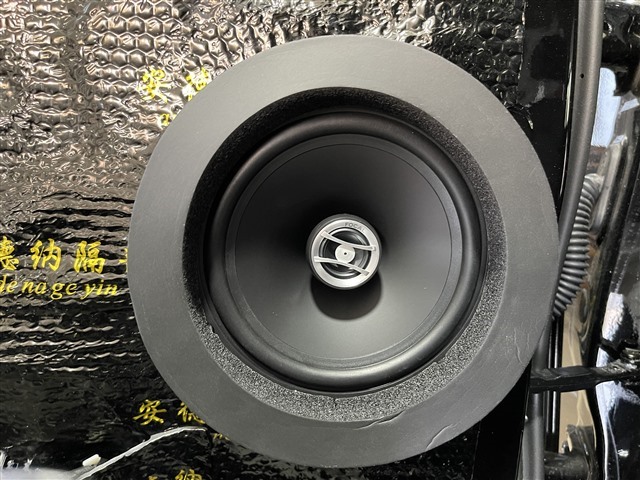 勁浪RCX-165同軸喇叭原位無損安裝在門板上,細心的改裝師還為喇叭加上美音圈,讓好聲音更為集中地發揮出來。