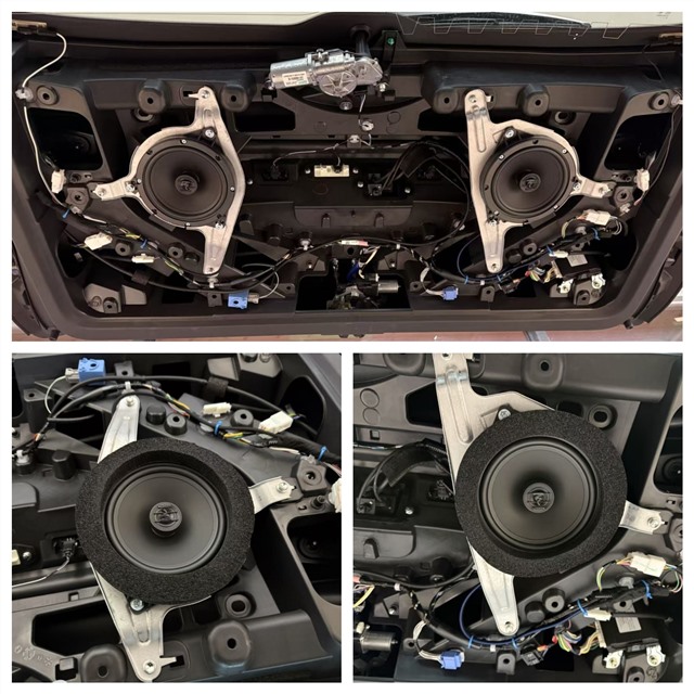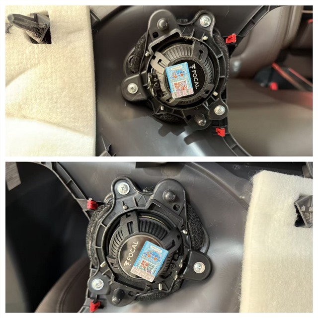 中置喇叭選用質感出色的勁浪亞麻盆中音,彌補了原車聲場中頻缺失的問題,讓人聲表現更具感染力。后門的勁浪亞麻盆中音與后尾門的勁浪ACX-165同軸喇叭均采用原位安裝方式,既保證了音響系統的協調性,又不破壞車內原有布局。
