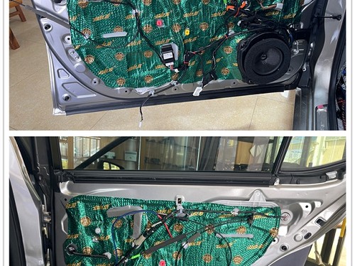 使用大能超級盾進行四門隔音處理。這一步驟的目的是有效降低門板的共振噪聲,同時增強門板的密封性,為后續的音響升級創造了一個良好的工作環境。