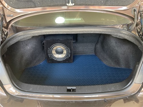 接下來,尾箱內(nèi)加裝了勁浪P25FE 10寸低音,為音響系統(tǒng)帶來深邃飽滿的低音效果。為了推動低音,使用了詩芬尼800.1低音功放,以確保低音的品質(zhì)和力度。