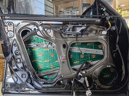 雅閣的車門比較薄,行車過程中風噪通過車門進入車廂,影響車內舒適性,改裝師使用大能超級盾對車門做內外兩層隔音,雙重保護,隔絕噪音,減少風噪進入到車廂,提升駕馭舒適度。