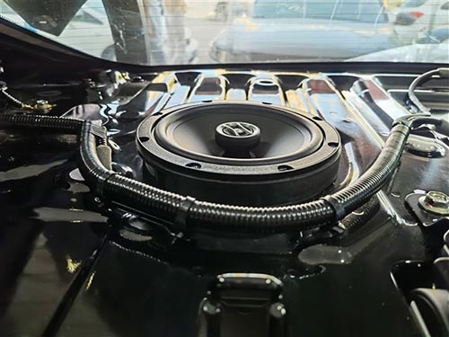 后聲場是法國勁浪RCX-165同軸喇叭,有明亮而干凈的音色和寬闊的音頻響應,使前聲場得到了很好擴展和延伸,讓整個聲場有更好的立體空間感,同時也讓后排乘客也能夠有良好的聆聽體驗。